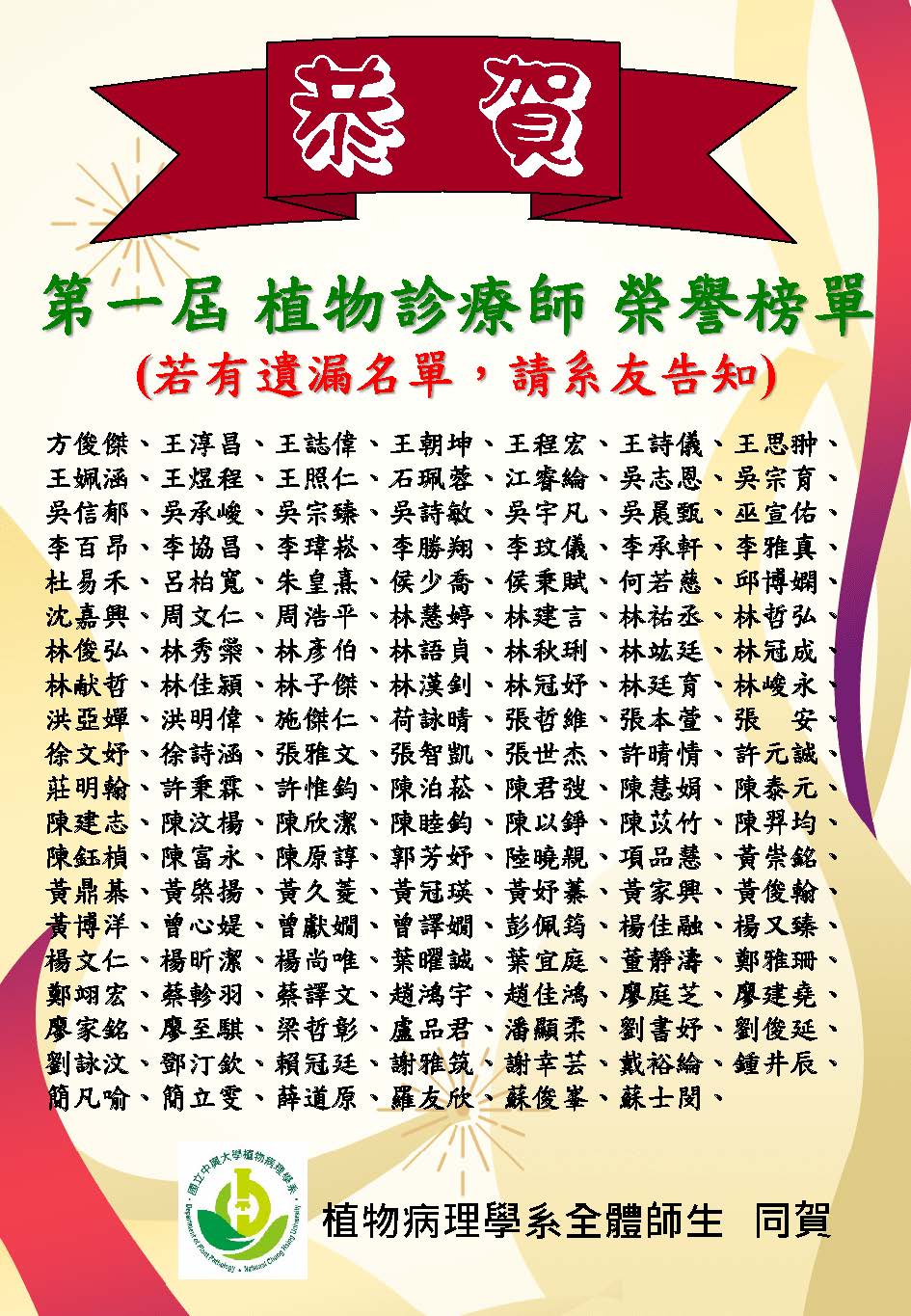 賀!第一屆植物診療師國考 本系成績亮眼!